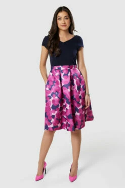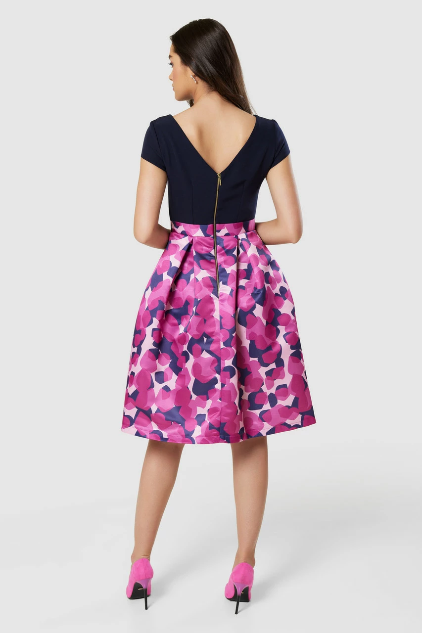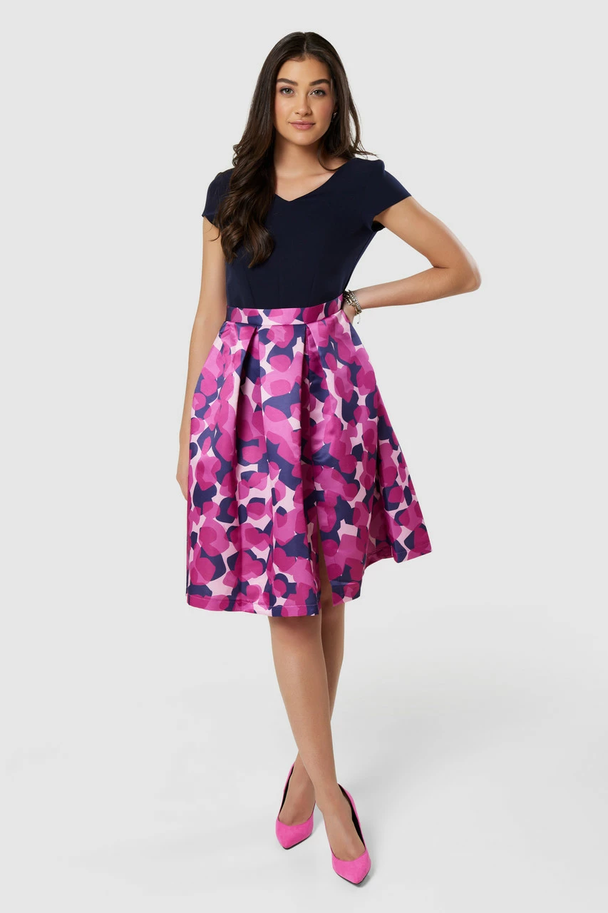 Details: 2 in 1 dress, Box pleats, Floral print skirt, Cap sleeves, Side pockets