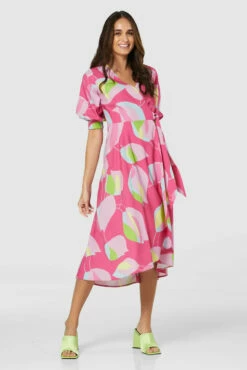 Details: Side tie waist, Voluminous Puff sleeves, Wrap front, Midi