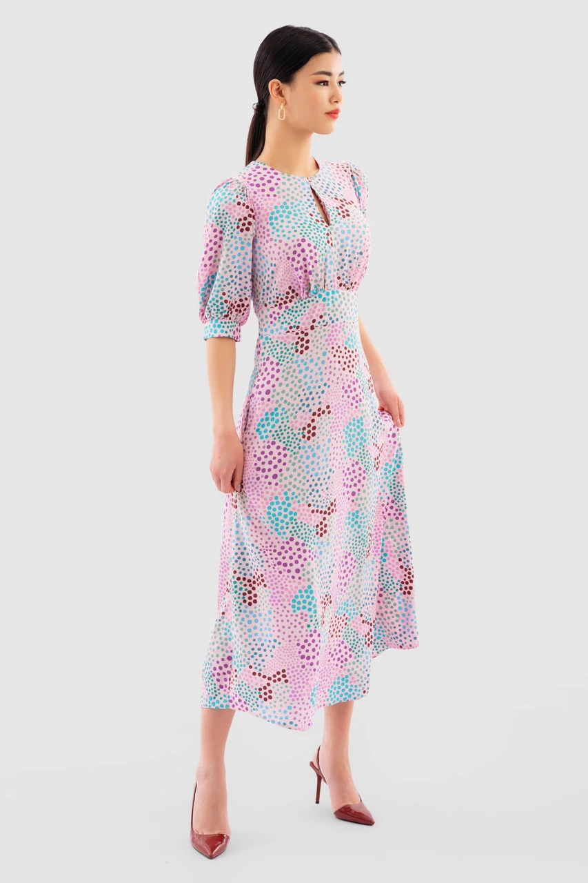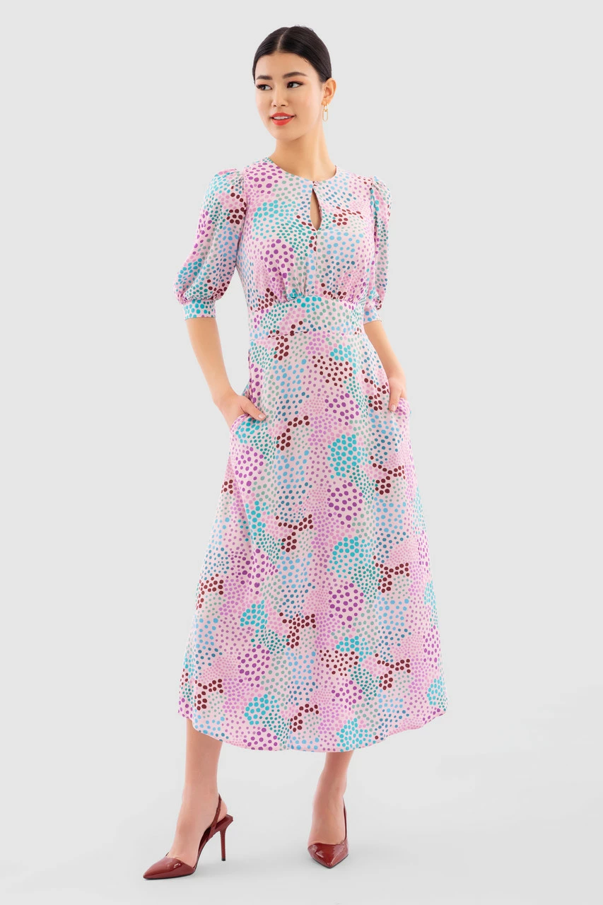 Details: Tie back waist, Belt included, Keyhole front, Puff sleeves, Gathers on shoulders & Waist, Cuff detailing, A- line silhouette, Loose fitting