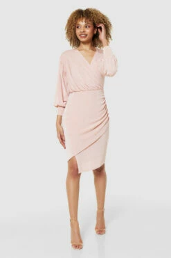 Style: Puff Sleeve Wrap Pencil Dress