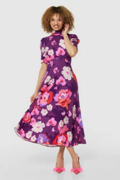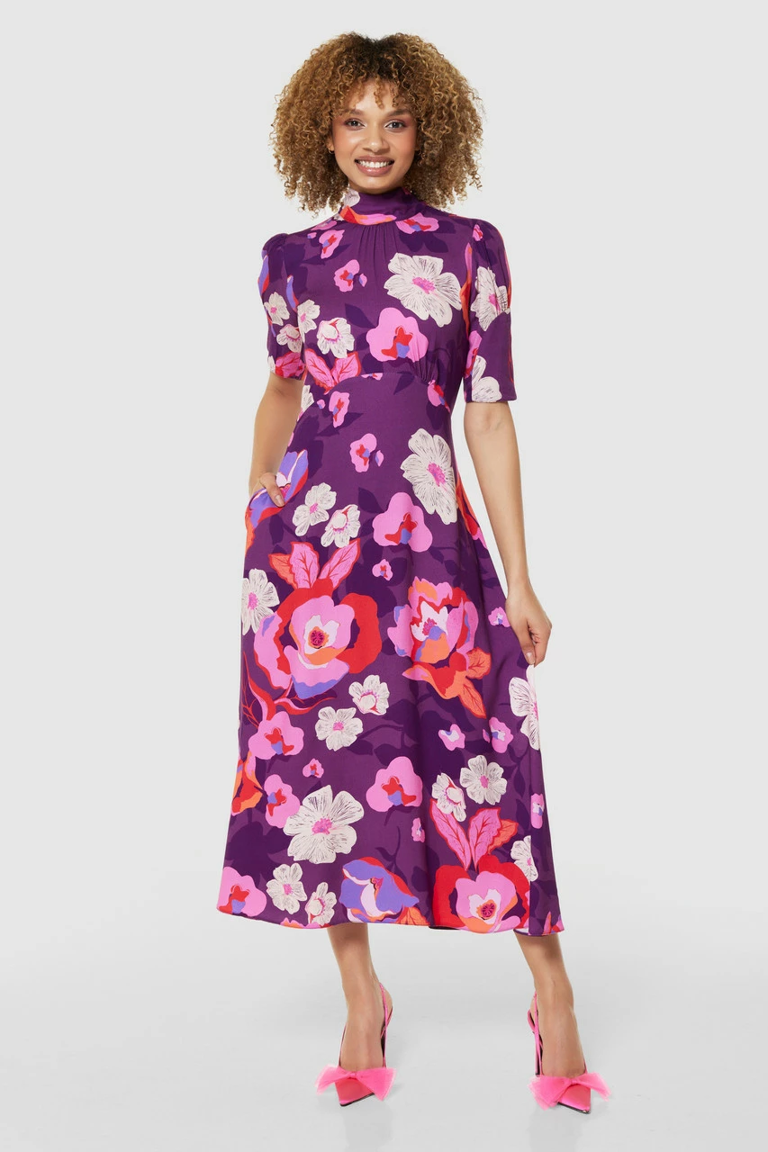 Details: Puff sleeves, Gathers on shoulders & Waist, A- line silhouette, Loose fitting, Side pockets, Floral print