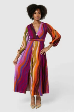 Details: Front cut split, Split sleeves, Elasticated cuffs, A- line silhouette, Wrap front