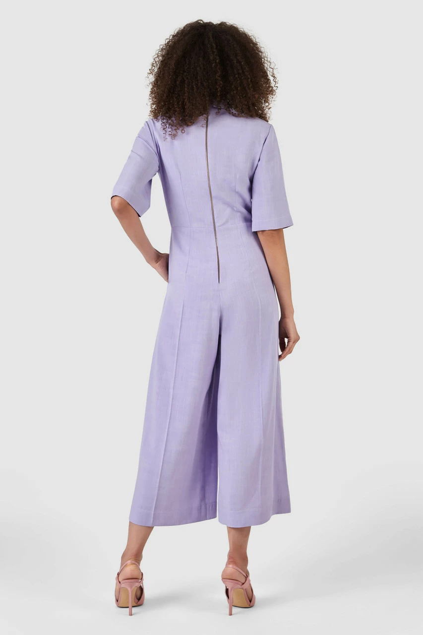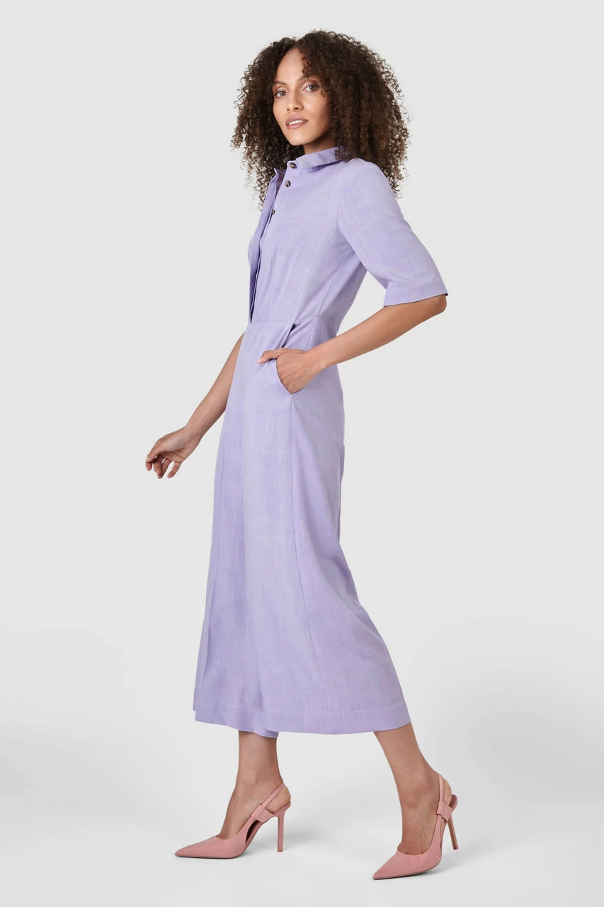 A classic cropped wide leg shirt style Jumpsuit, cut in a Tencel with concealed buttons.