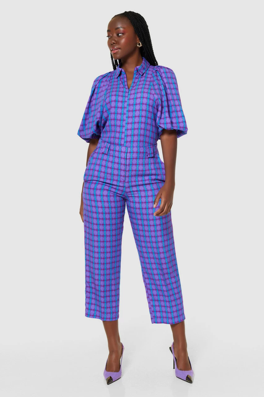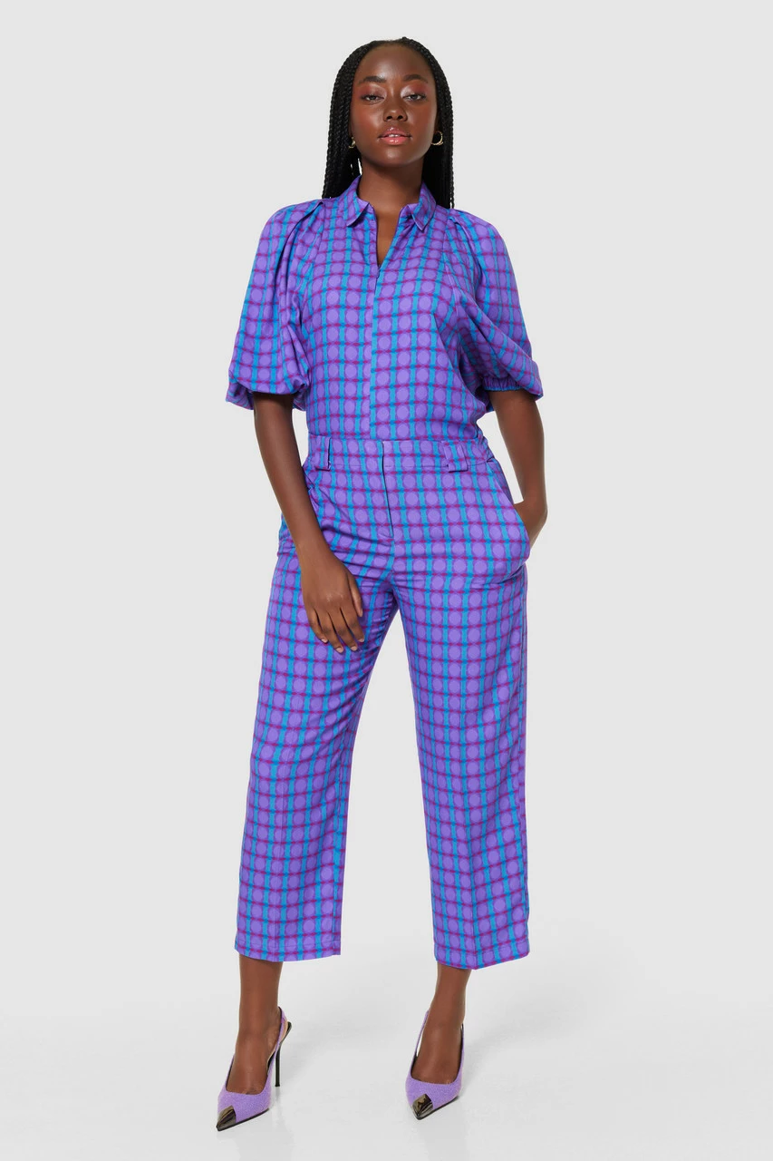 These straight-leg cropped trousers feature a bold and stylish pattern that will elevate any outfit. Whether you’re headed to the office or a weekend brunch, these patterned trousers are sure to make a statement. The cropped length keeps things fresh and modern, especially when coordinated with the matching blouse