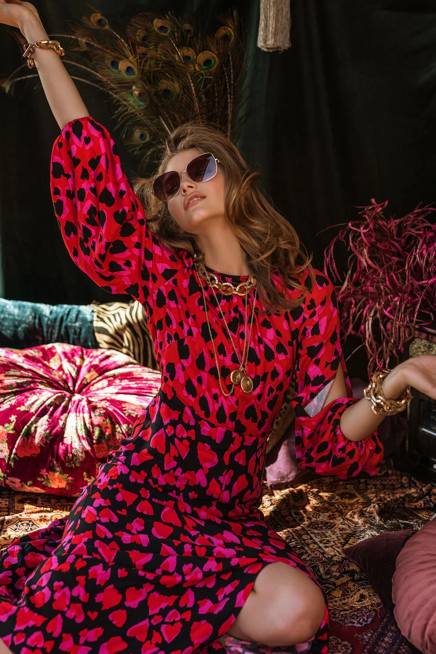 Details: Side split, Unlined, Puff sleeves, Gathered at cuffs, Split sleeve detail, A- line silhouette, Gathers on neck