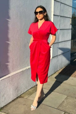 This Wrap pencil midi dress, one of our velour dresses, with a split skirt, kimono sleeves, and a V neckline. This sophisticated outfit is suitable for wearing to work, parties, weddings, and other formal events. For the ultimate night out, pair with some heels or boots.