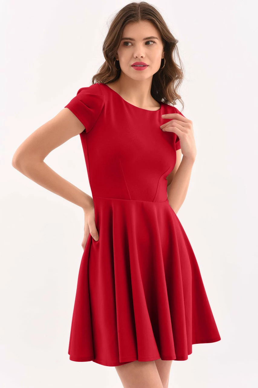 Details: Flared skirt, Cap sleeves, Refined shape, Waist fitted