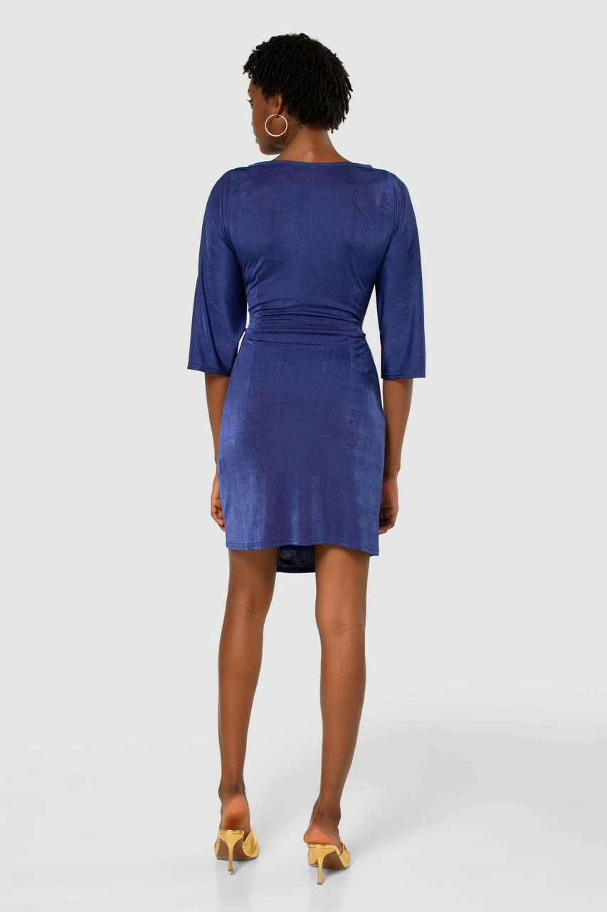 A slinky jersey Kimono Dress with draped wrap skirt and front tie.