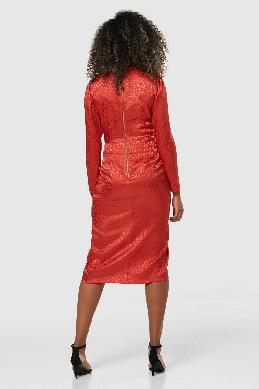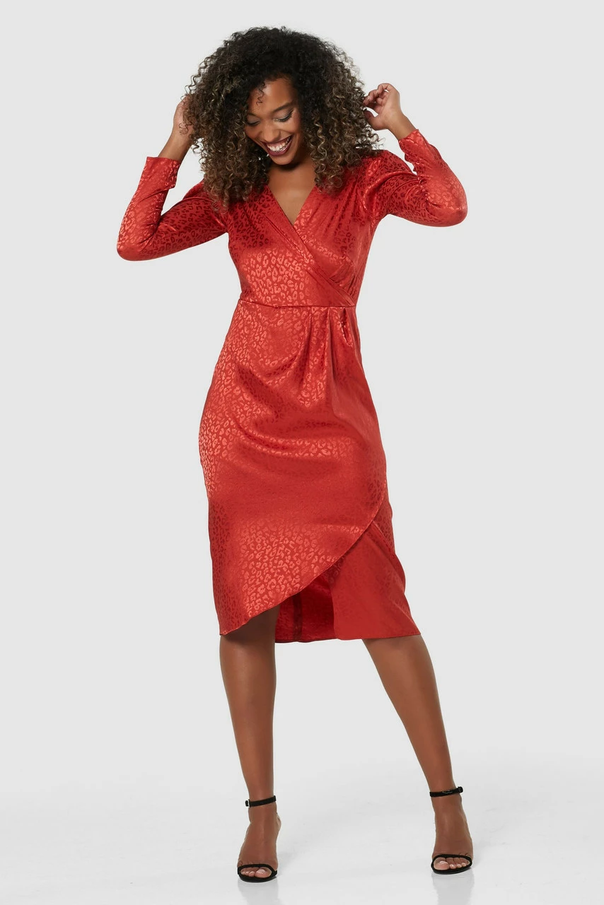 Details: Wrap front, Overlapping panels, Drape details, Animal print, Jacquard design, Midi
