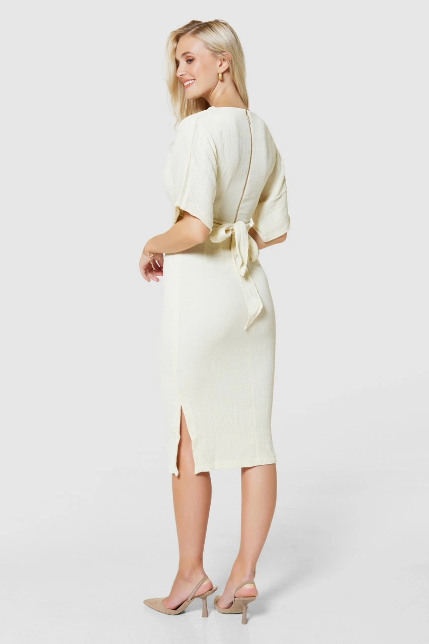 Details: Unlined, Kimono sleeves, Tie back waist, Side slit cut below, Tight waistband