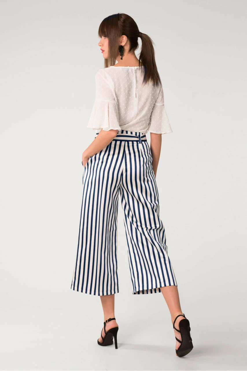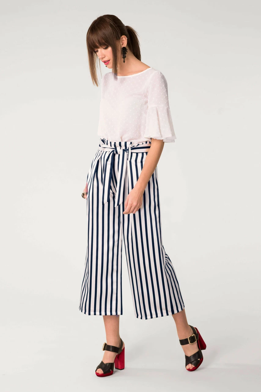 Details: Tie up waist, Side pockets, Cropped, Wide leg, High waist, Streamlined silhouette