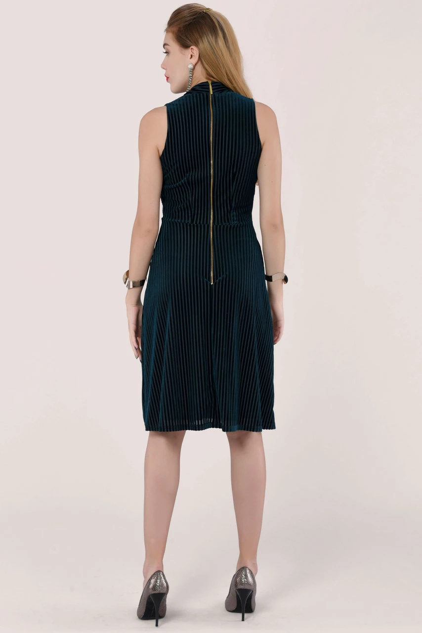 Details: Twist pleats details, Fully lined, High neck back neckline, A – line silhouette