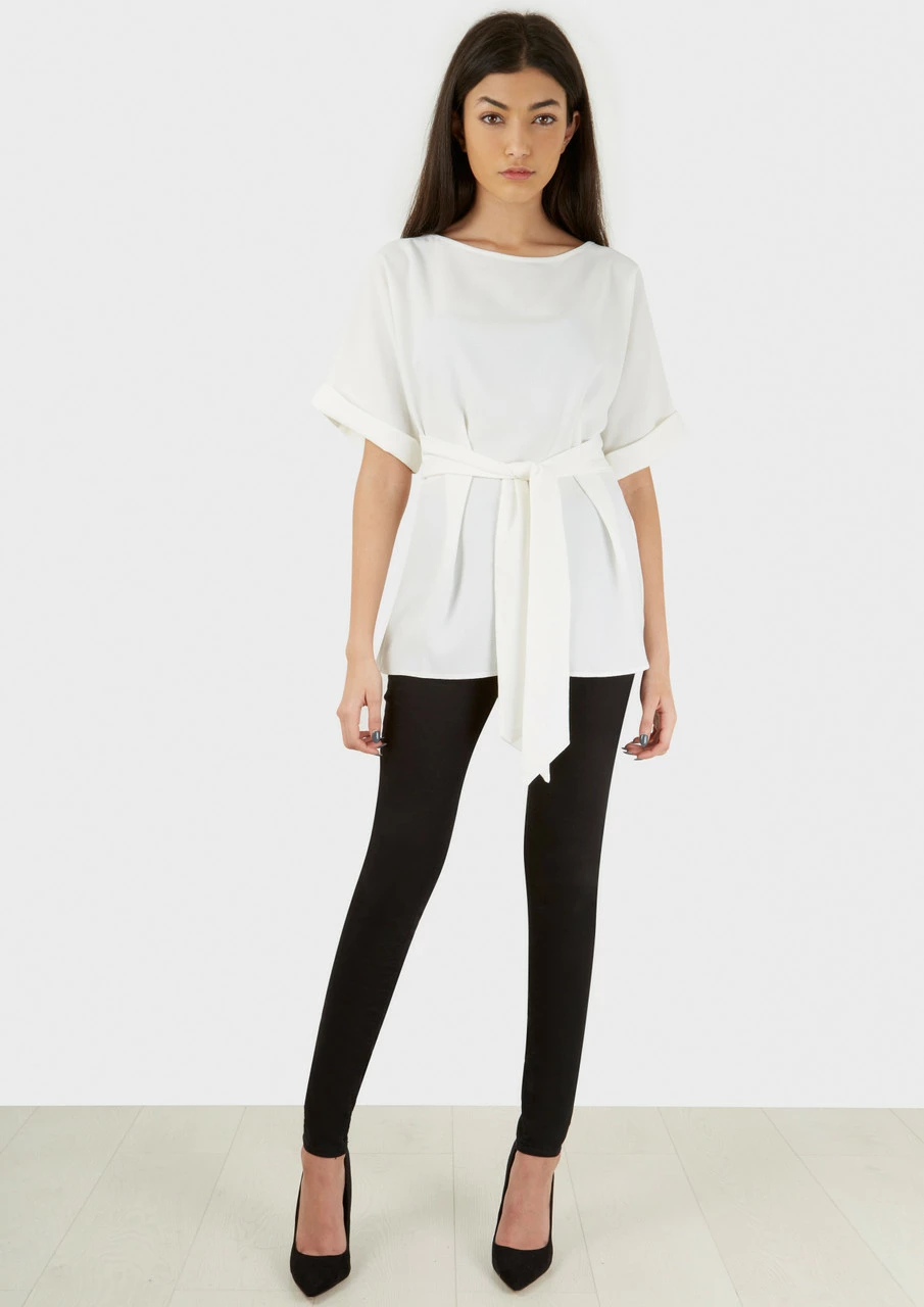 Details: Wide Sleeve, tie up waist, Double cuff detailing
