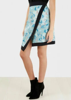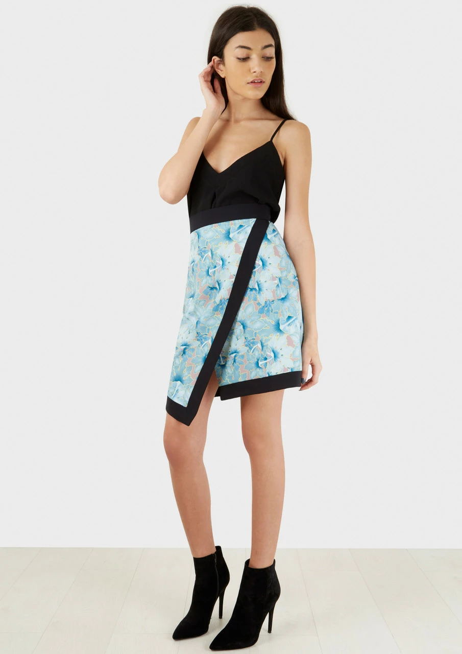 Style: Wrap Contrast Vintage Print Pencil Skirt