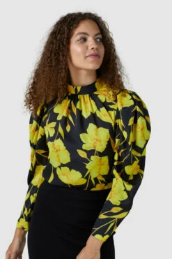 Details: Puff sleeves, Gathers on neck, High neck, Floral print