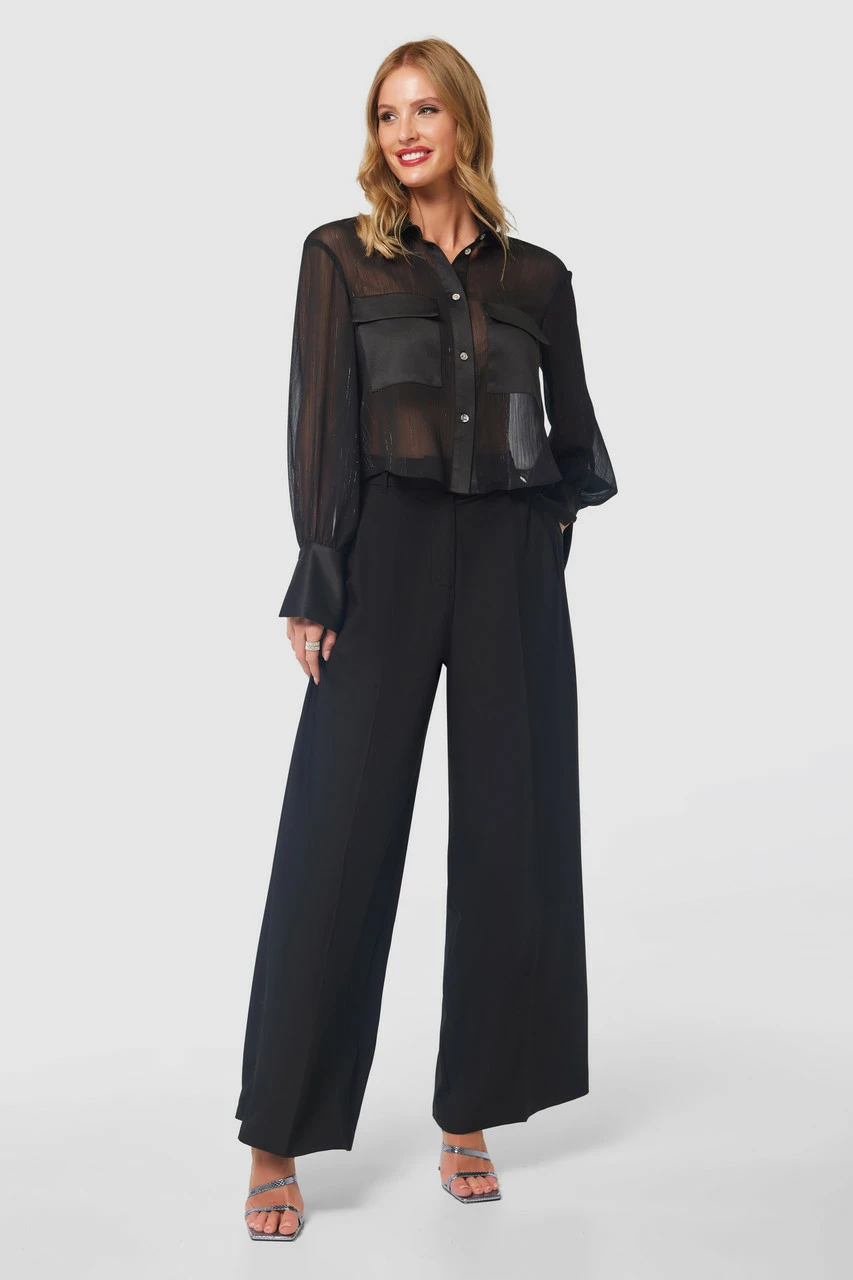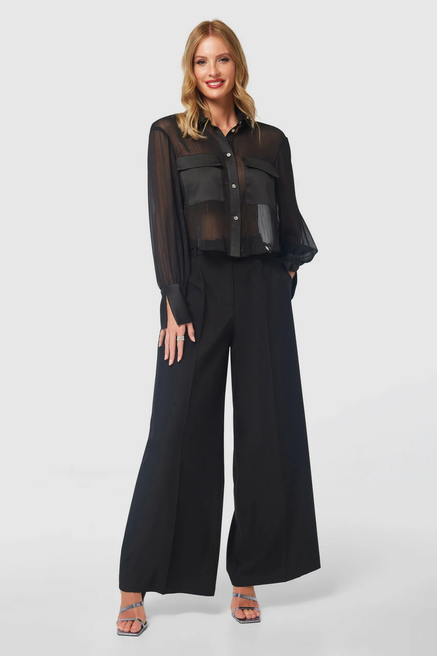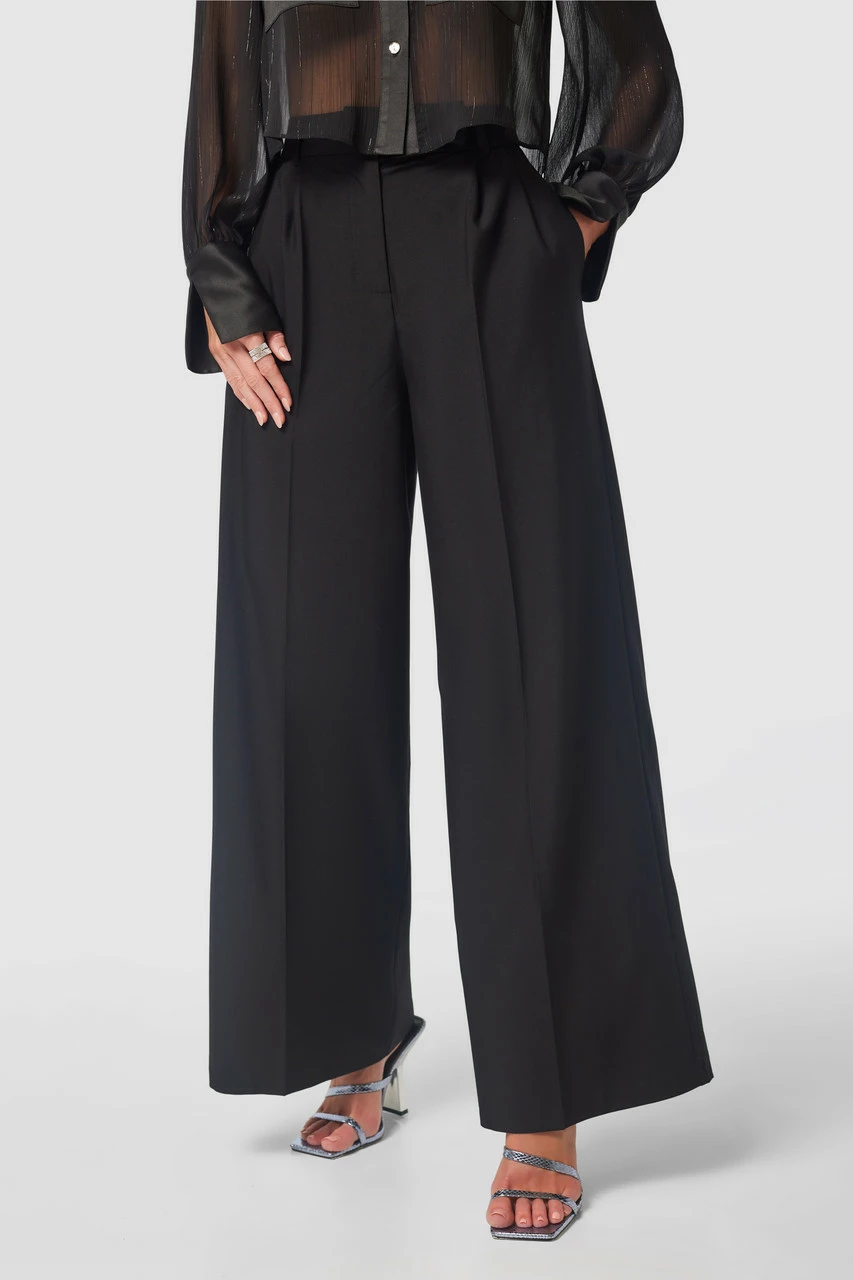 Details: Wide leg, Side pockets, Long, Pleat detailing