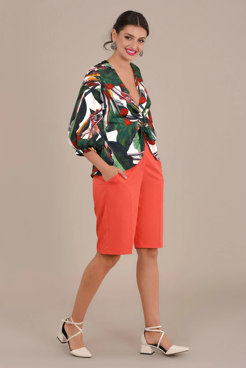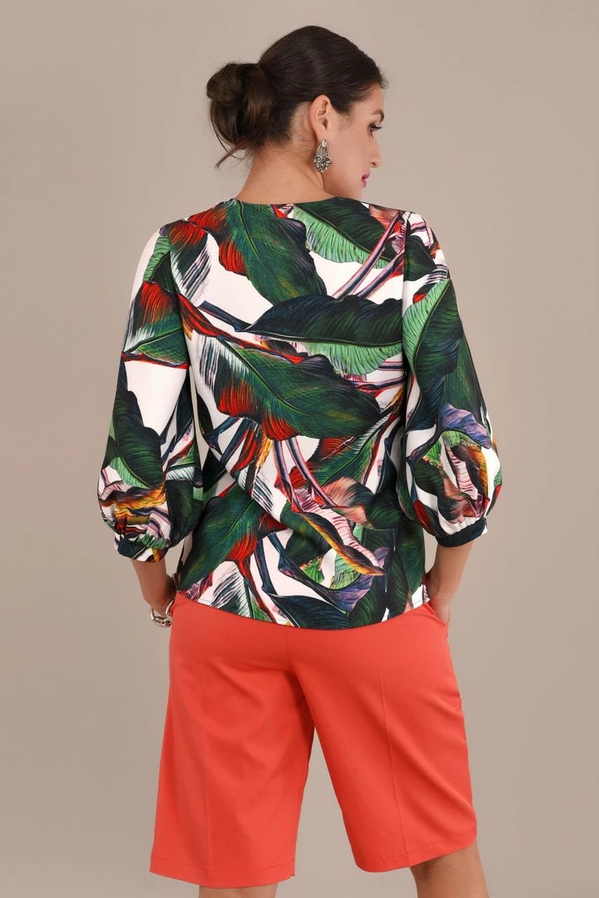 Details: Twist Wrap front, Cuff detailing, Puff Sleeve with Thin Cuff, Banana Leaf Print