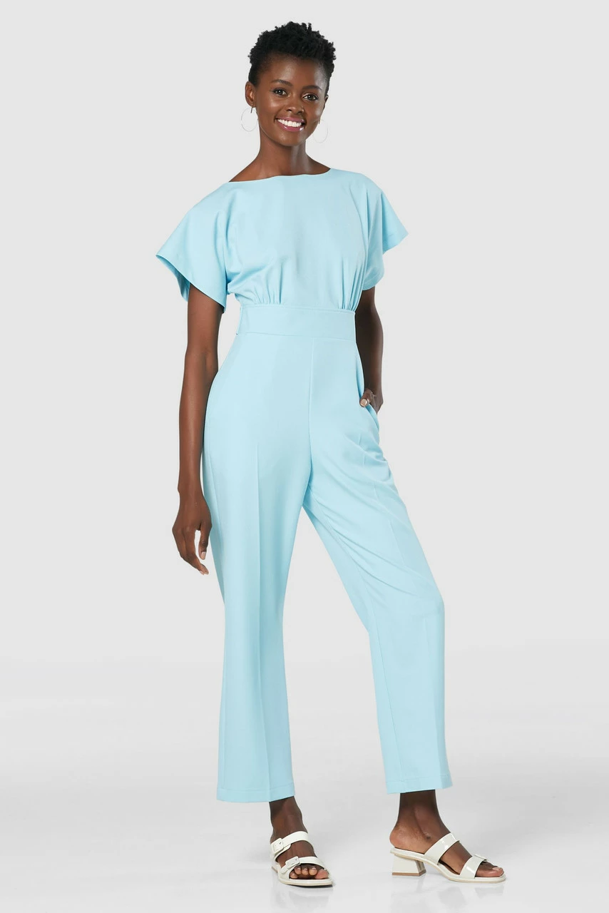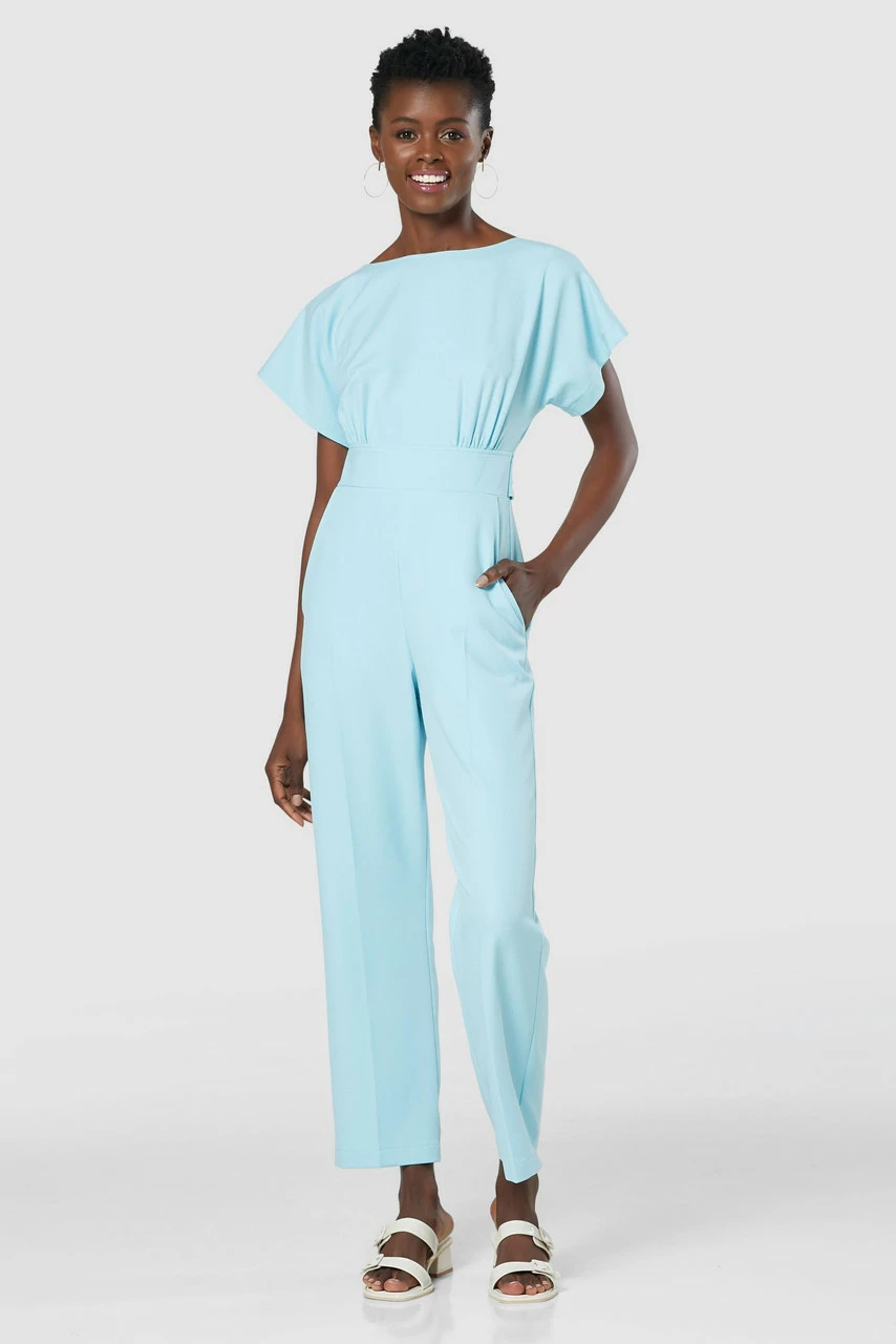 One of our bestselling Kimono dresses reworked into a Jumpsuit in a blue pique.