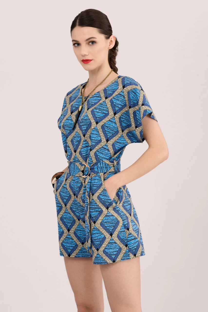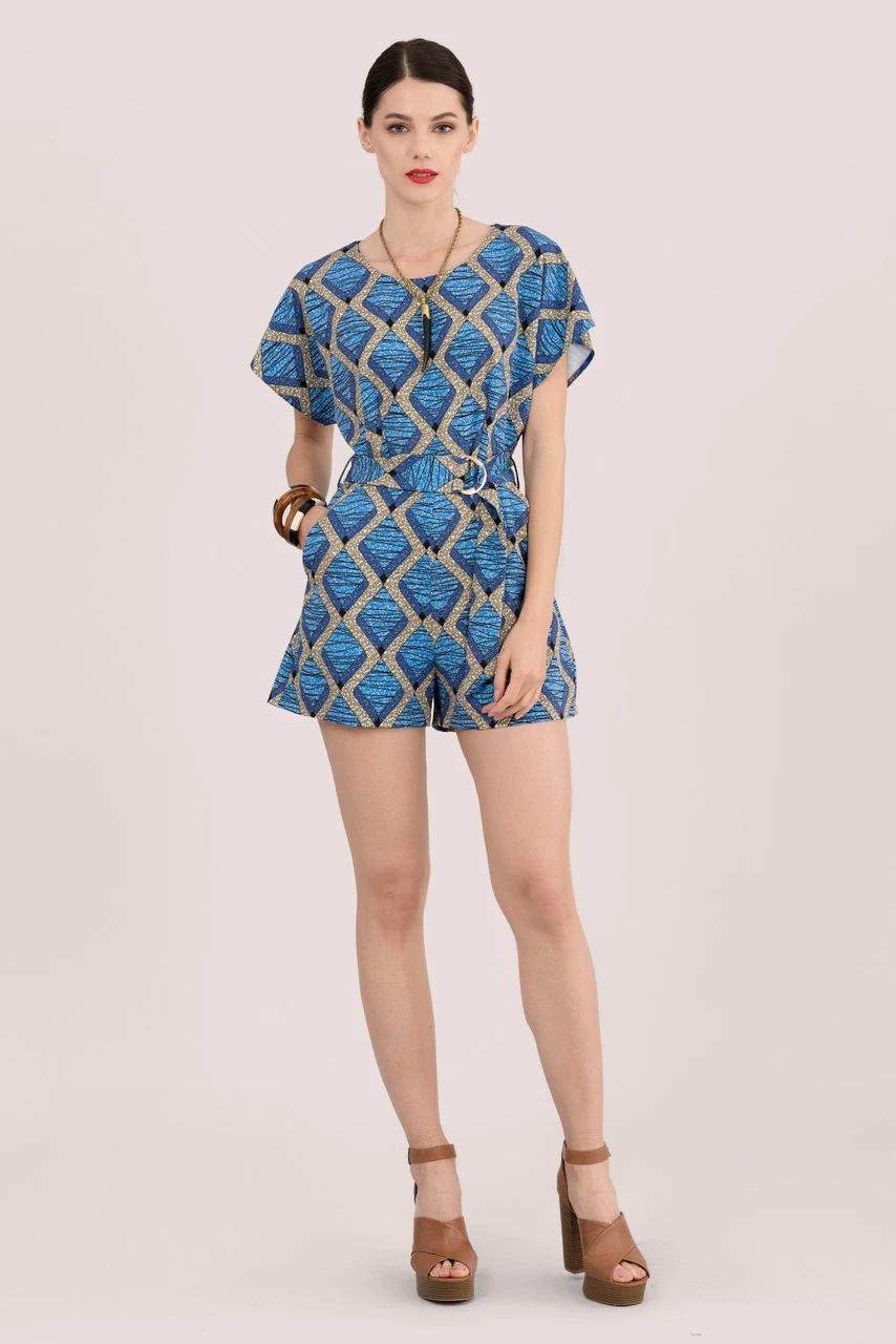 The appealing African inspired pattern of this playsuit will instantly put you in a good mood and ensure you are ready for your next holiday adventure. Team this casual piece up with a pair of sandals and a shoulder bag.